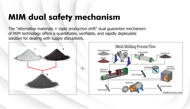 Traditional processing technologies struggle to respond to crises, whileMetal Injection Molding (MIM) technology, with its dual advantages of”flexible adaptation of alternative materials + rapid production switchingresponse,” is becoming a core barrier for enterprises to resist supply chainrisks.